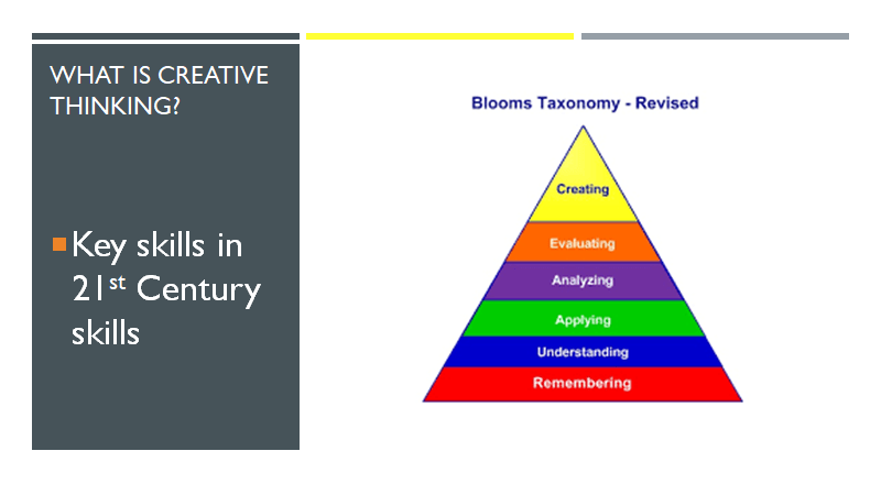 Along with critical thinking, creative thinking has become a buzzword as it is one of the ‘so called’ 21st century skills. When we consult Bloom’s taxonomy of cognitive processes, ‘creating’ is the highest order of thinking followed by evaluating and then analysing which are more critical thinking skills.  The lowest order of thinking is ‘remembering’. What kind of thinking do we encourage in the classroom? Certainly, when I was a learner learning Latin at school there was a heavy emphasis on memorization and this emphasis on memorising information still has a strong influence on learning today. However learning is more effective when it activates higher order thinking so we need to encourage critical thinking skills and more importantly creative thinking.